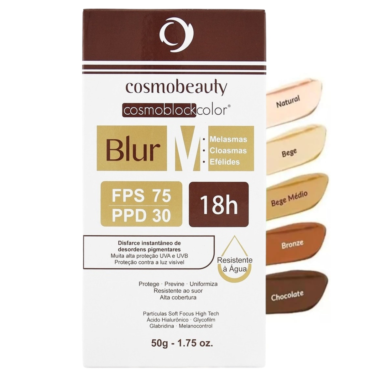 O Cosmobeauty Blur M Fps75 Clareador de Manchas com Base 50g é um protetor solar facial com base e ação clareadora, desenvolvido para uniformizar o tom da pele e disfarçar imperfeições. Sua textura leve e toque seco proporcionam efeito mate imediato, garantindo alta proteção contra os raios UVA e UVB. Ideal para quem busca uma pele lisa, protegida e com aparência natural ao longo do dia.