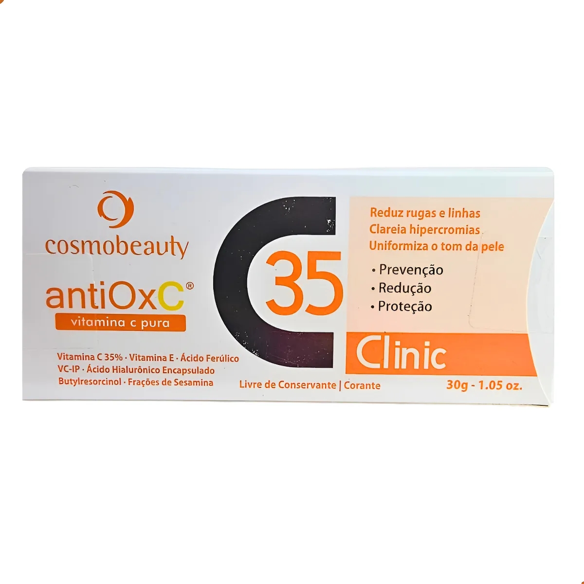 O Cosmobeauty Antiox C Clinic Vitamina C 35 Pura 30g foi desenvolvido para oferecer alta performance no cuidado facial, promovendo luminosidade, uniformização do tom e ação antioxidante intensiva. Sua fórmula concentrada com vitamina C pura auxilia na firmeza da pele, suaviza linhas finas e contribui para uma aparência mais revitalizada e uniforme.
