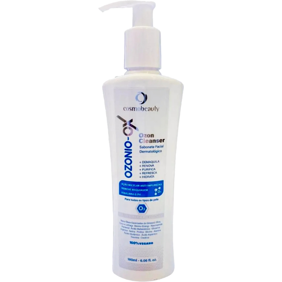 O Cosmobeauty Ozonio Ox Sabonete Líquido 180ml promove limpeza eficaz com ação oxigenante, ajudando a purificar a pele e manter a sensação de frescor. Sua fórmula com tecnologia de ozônio contribui para o equilíbrio cutâneo, melhora da textura e aparência mais revitalizada, sem ressecar ou agredir a barreira natural da pele.